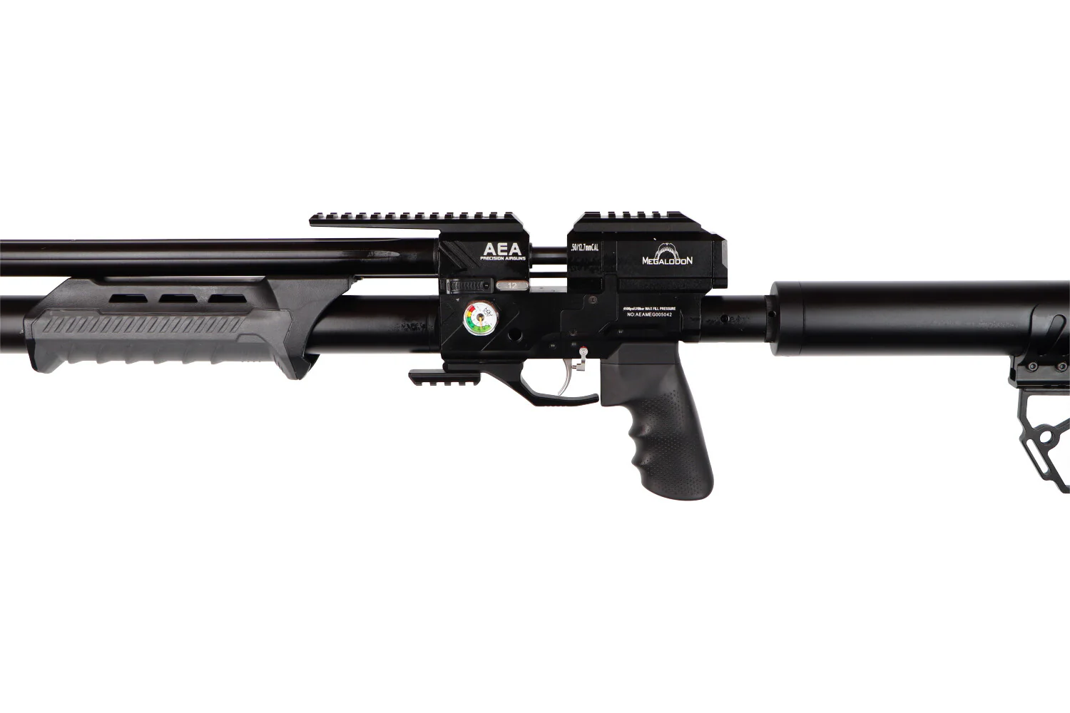 De AEA Megalodon is een indrukwekkend PCP-geweer dat gebruikmaakt van een soepele pompactie. Hierdoor kun je eenvoudig herladen zonder je handen te hoeven verplaatsen: snel, intuïtief en efficiënt.
